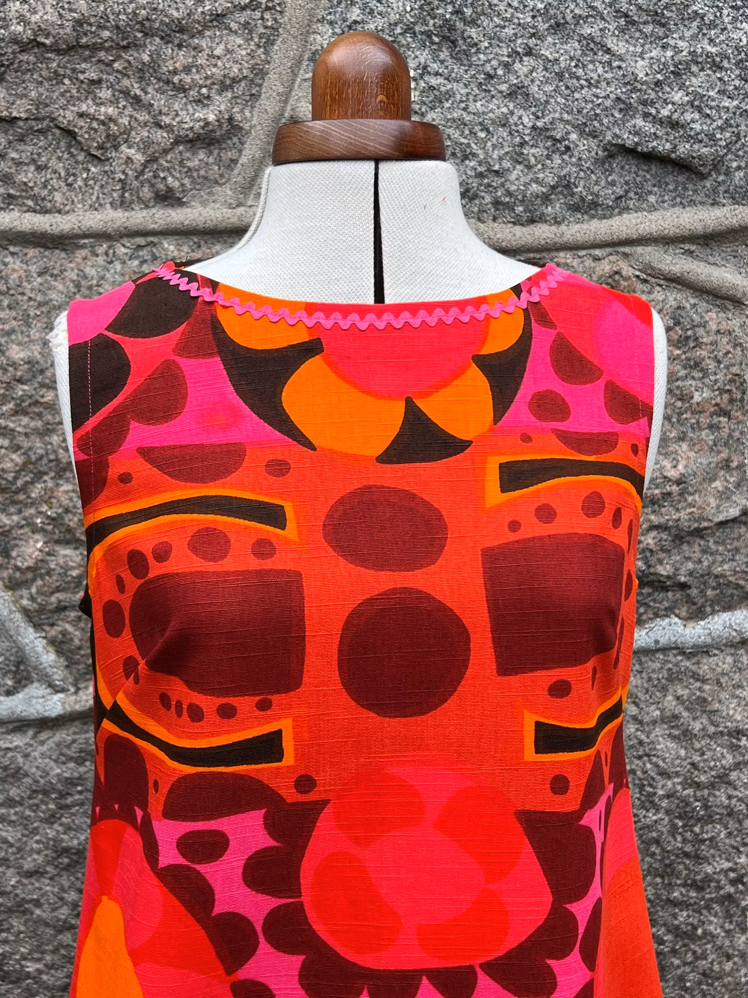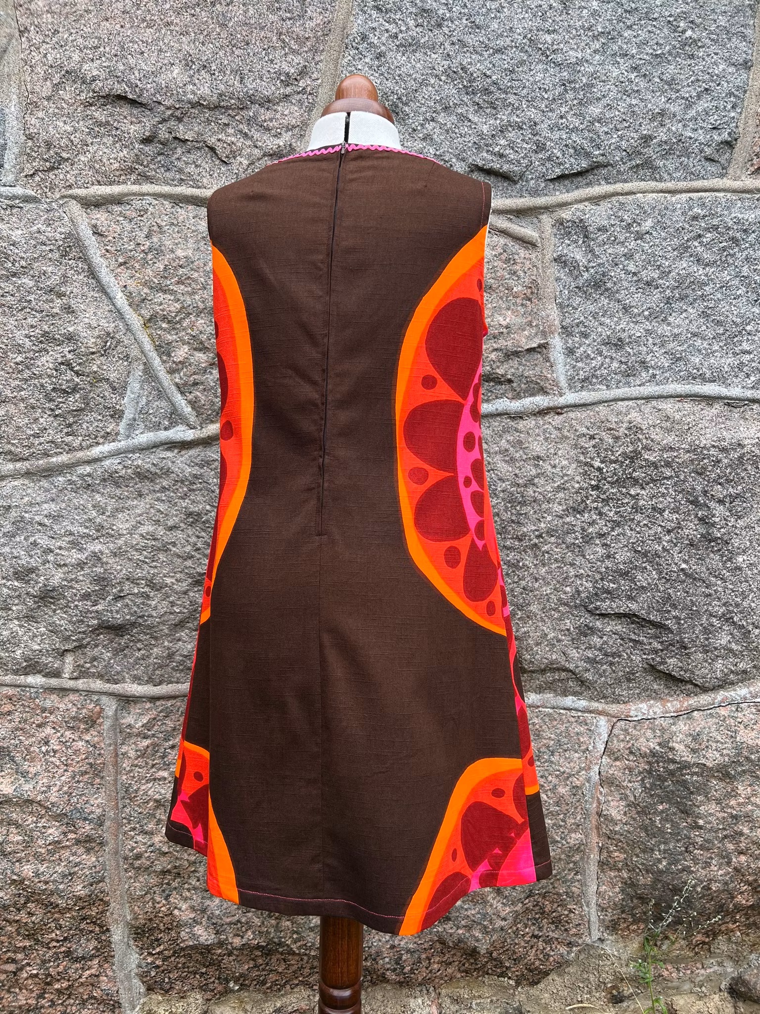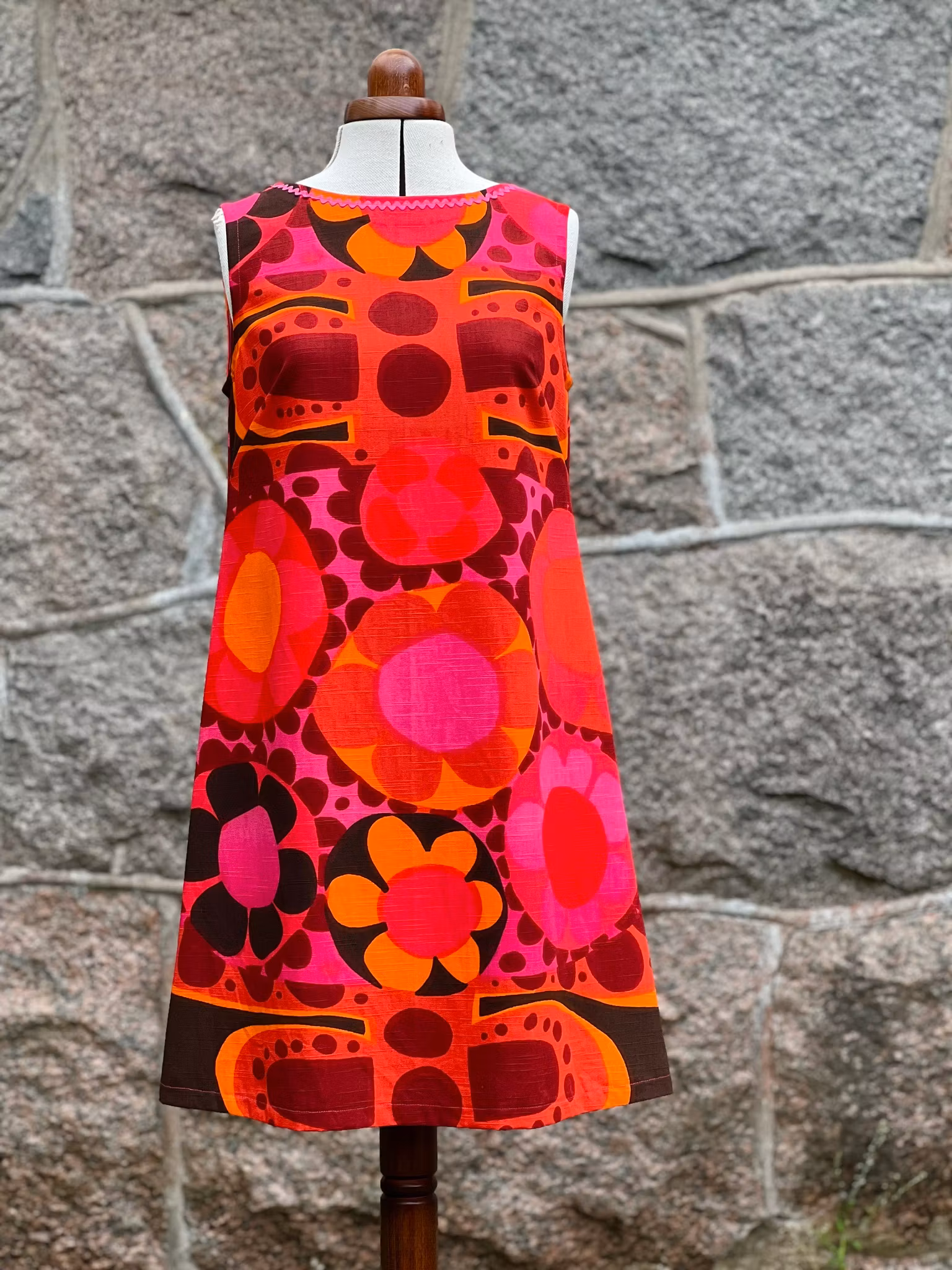 Klänning i A-linjemodell sydd i ett äkta vintagetyg, Mykeo, designat av Saini Salonen för Borås cotton.