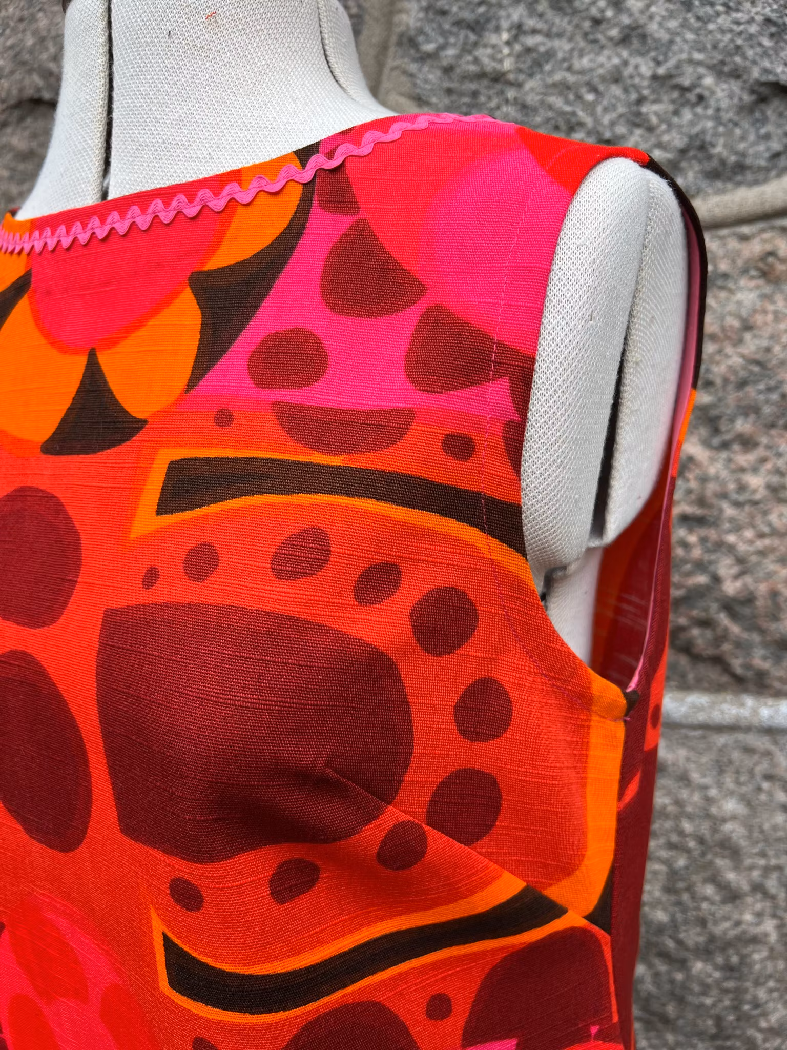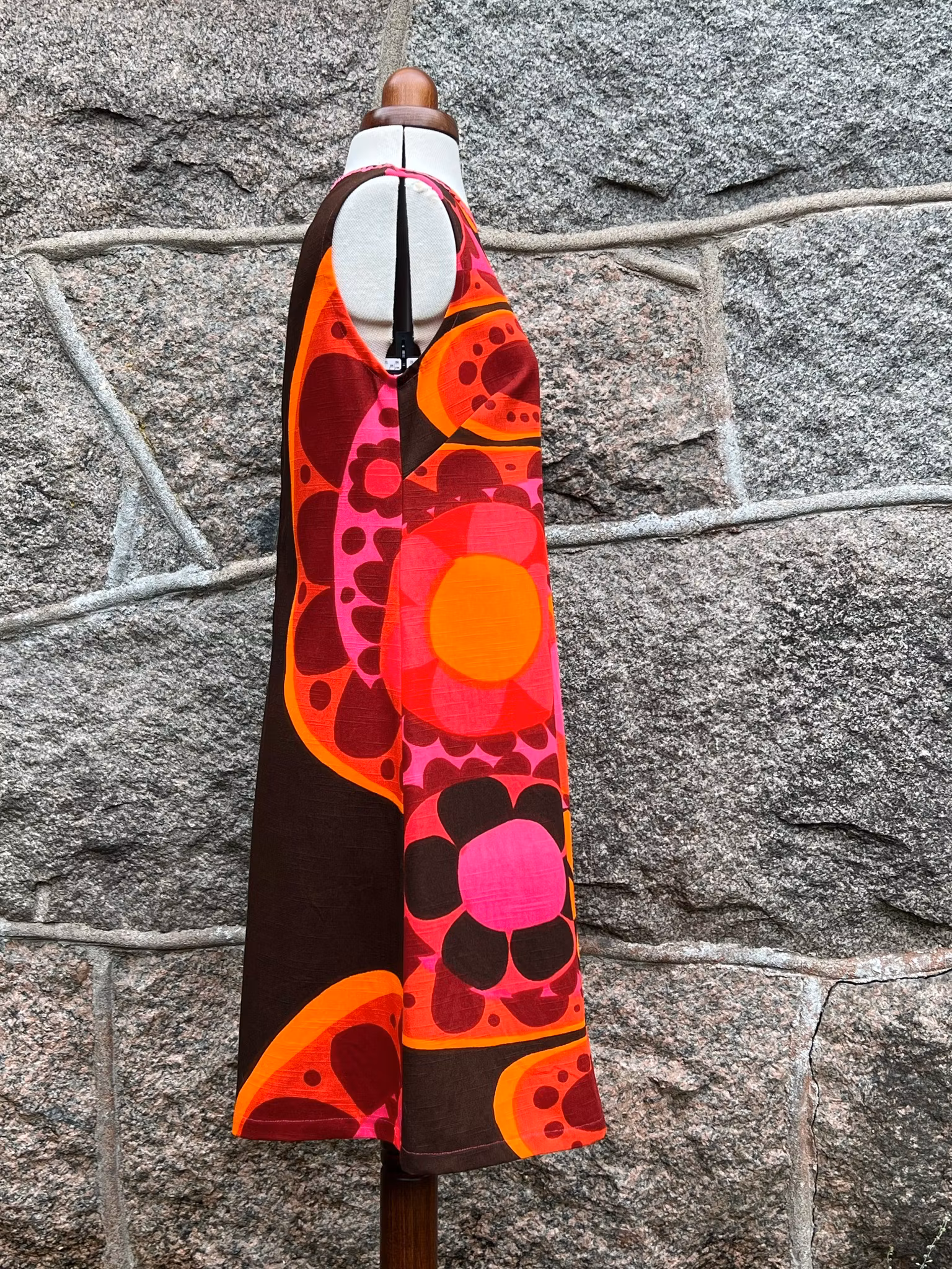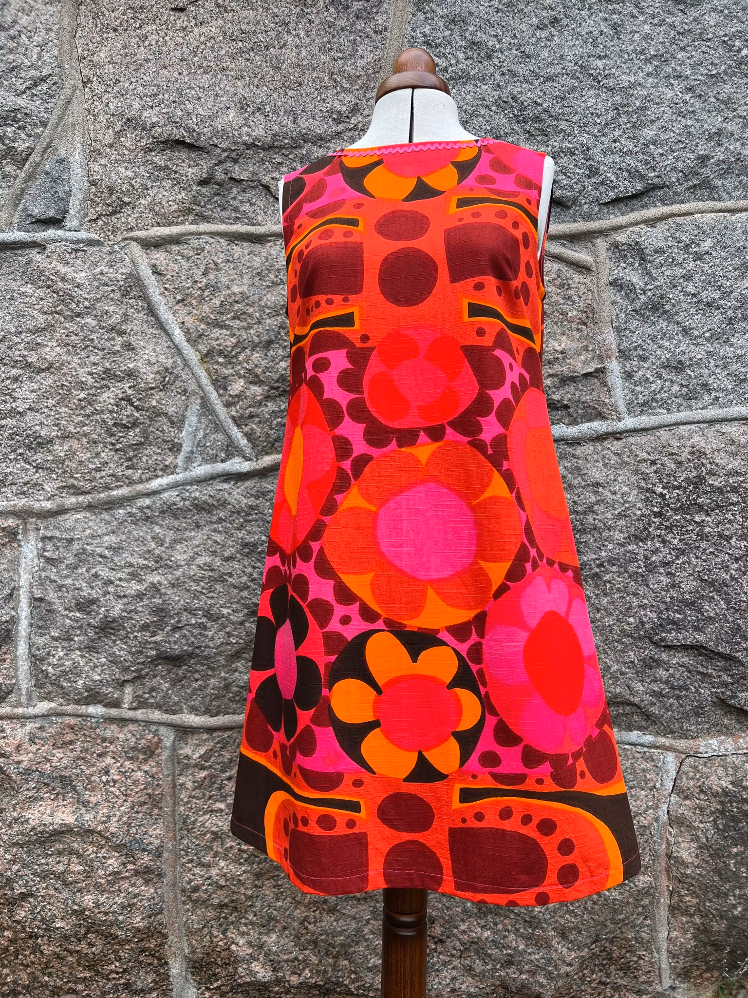 Klänning i A-linjemodell sydd i ett äkta vintagetyg, Mykeo, designat av Saini Salonen för Borås cotton.