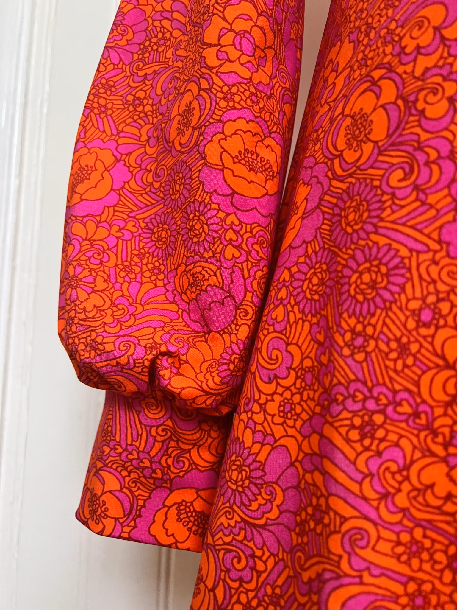 Det vackra tyget är designat av Leena Renko för Vintage in my heart. Material 95 % ekologisk bomull och 5 % elastan, med gott om stretch i.