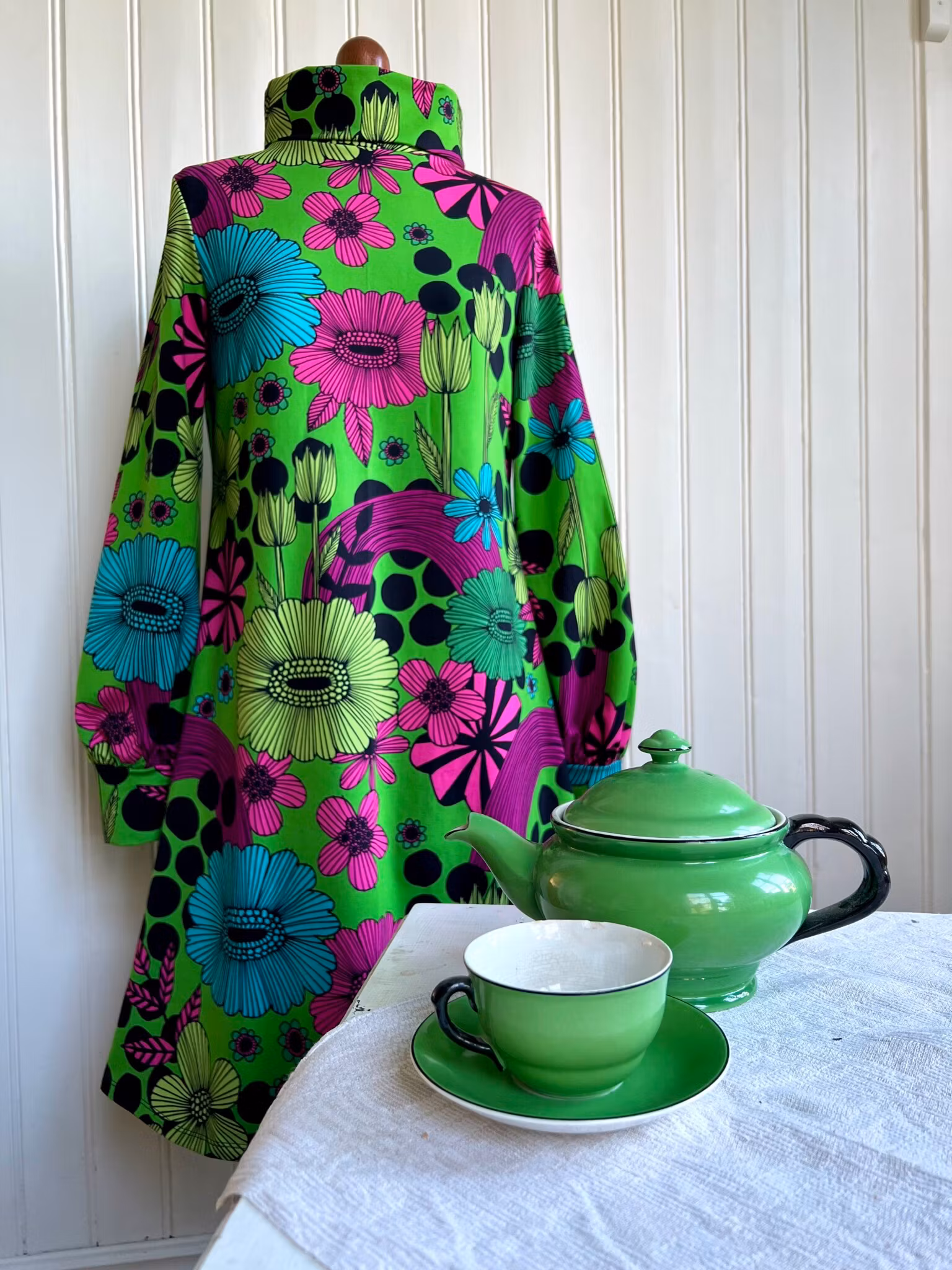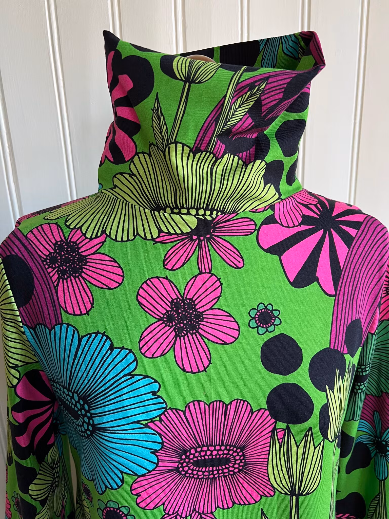 Det vackra tyget är designat av Studio Granath för Vintage in my heart. Material 95 % ekologisk bomull och 5 % elastan, med gott om stretch i.