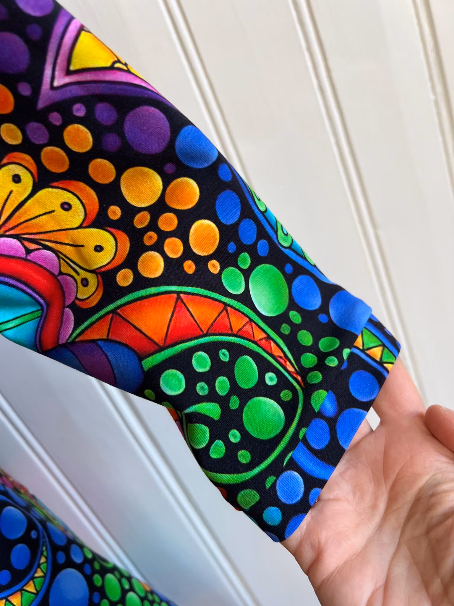 Tyget är nyproducerat i mycket starka härliga färger och ett mönster som har många detaljer och skuggeffekter. Material 95 % bomull och 5 % elastan, med gott om stretch i.