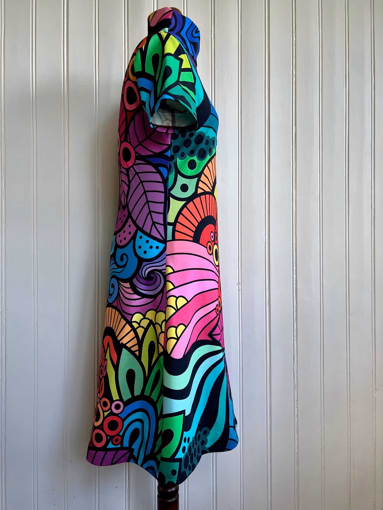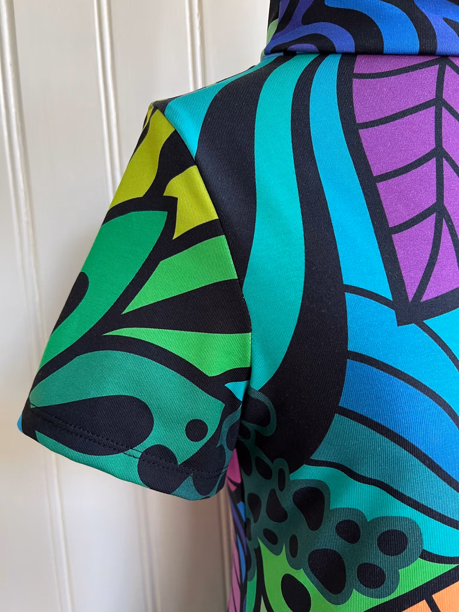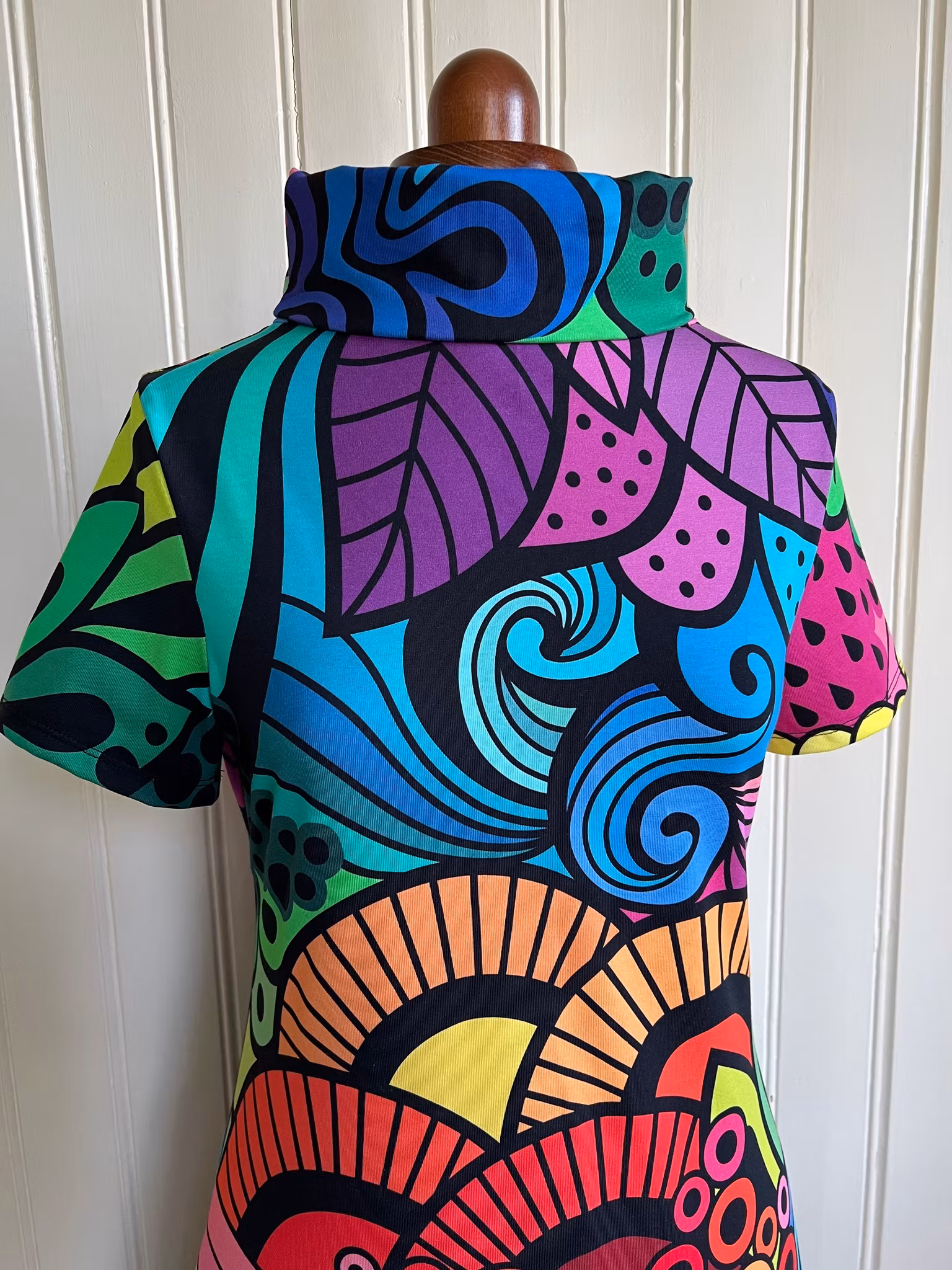 Tyget är designat av Linda Forsberg och heter Groovy rainbow.