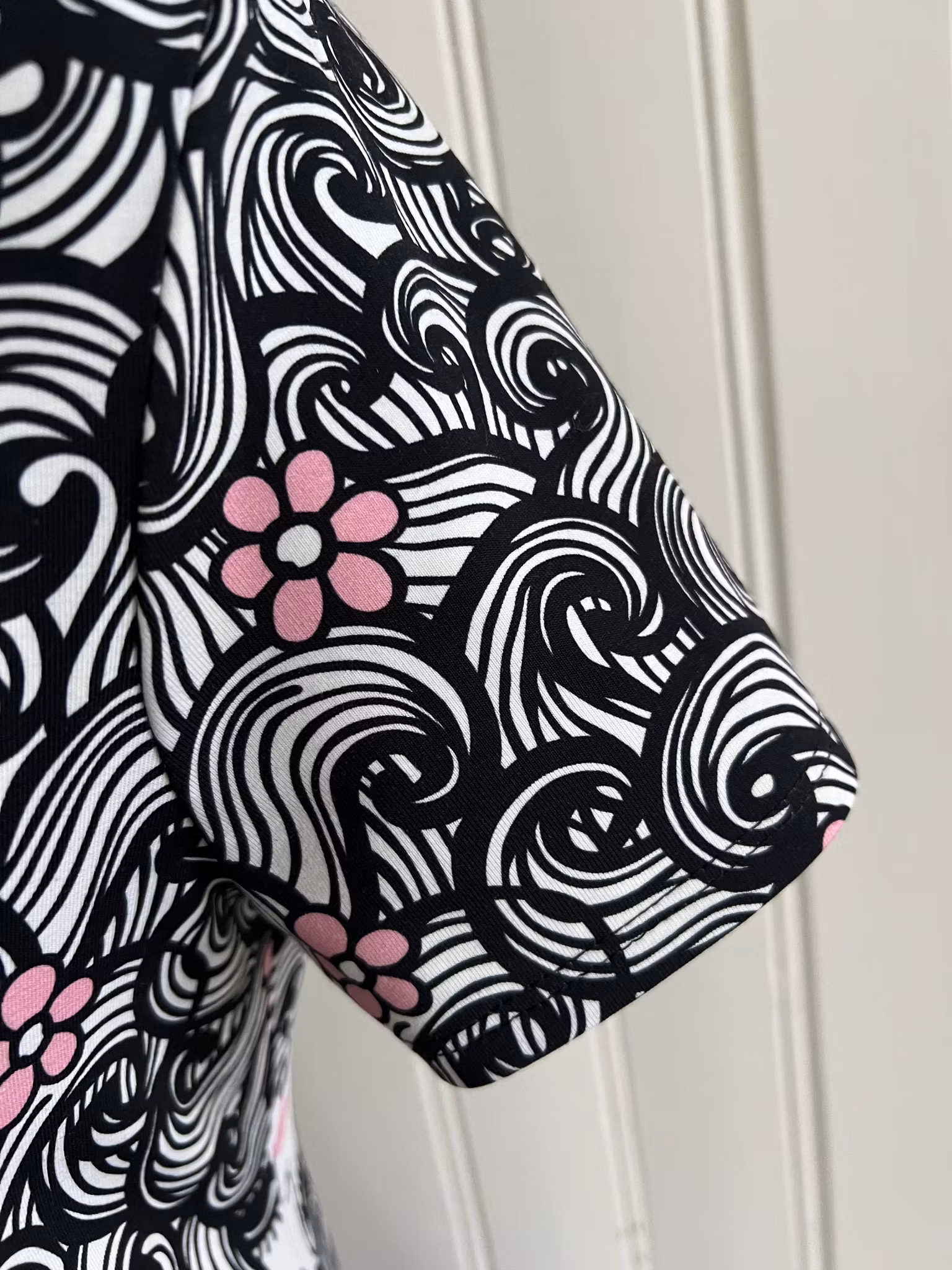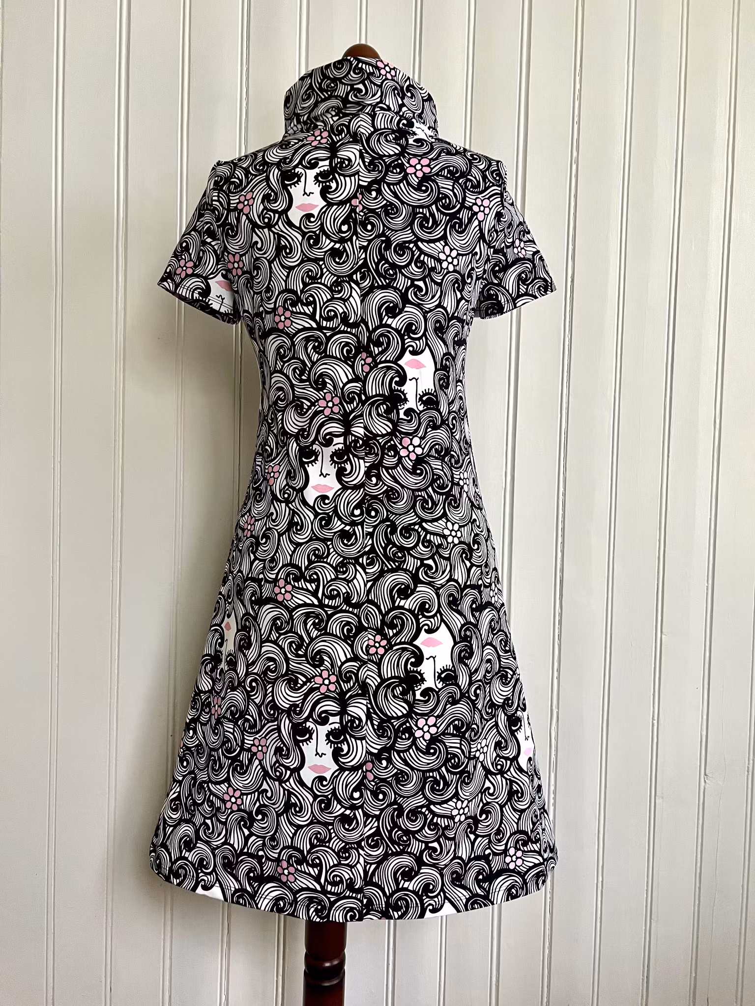 Klänning i A-linjemodell med hög krage som kan dubbelvikas. Sitter mer figurnära över bysten för att sedan få vidd över stussen. Kragen värmer skönt runt halsen utan att sitta åt. Mjuk skön jersey i 95 % bomull och 5 % elastan.