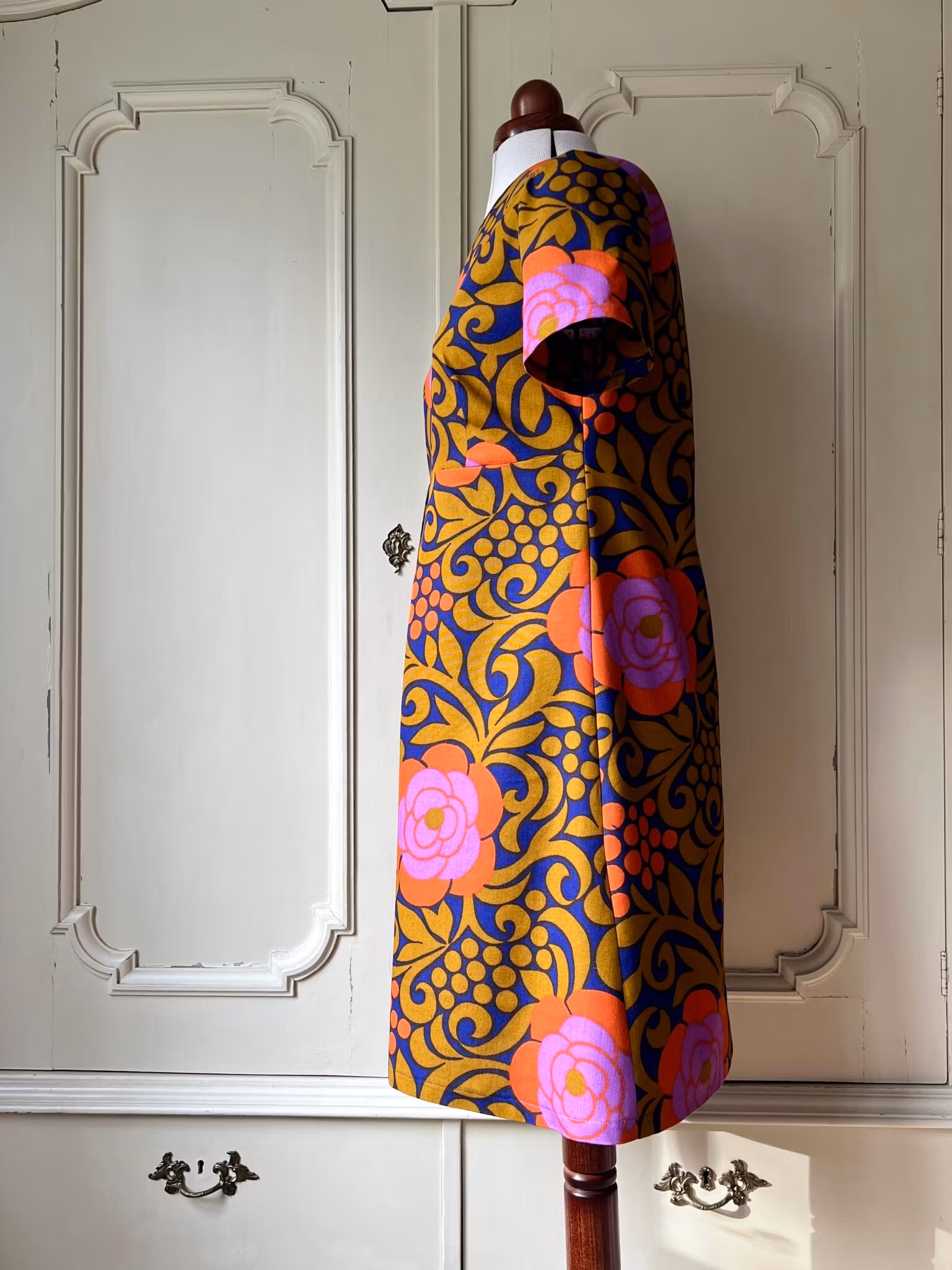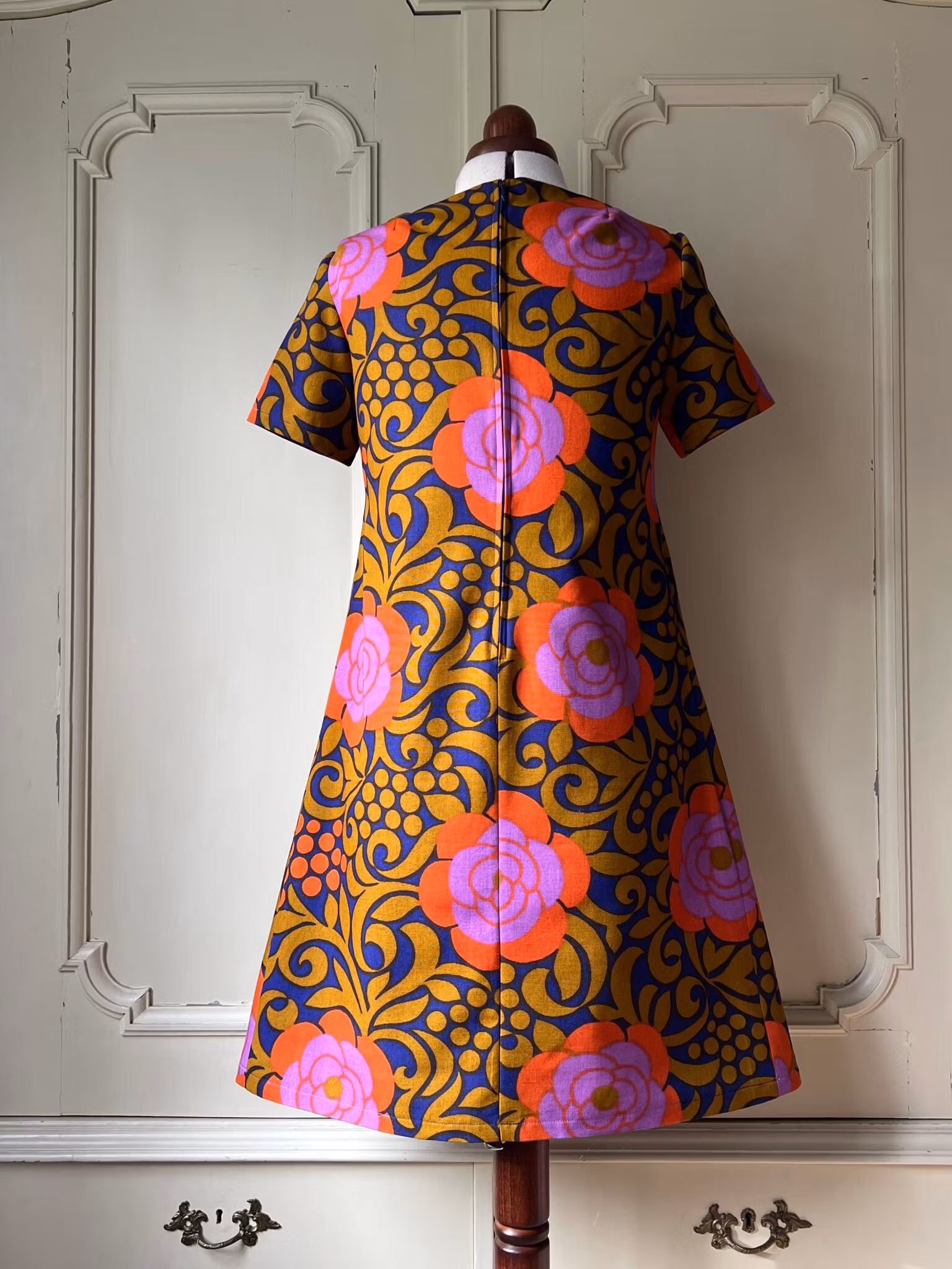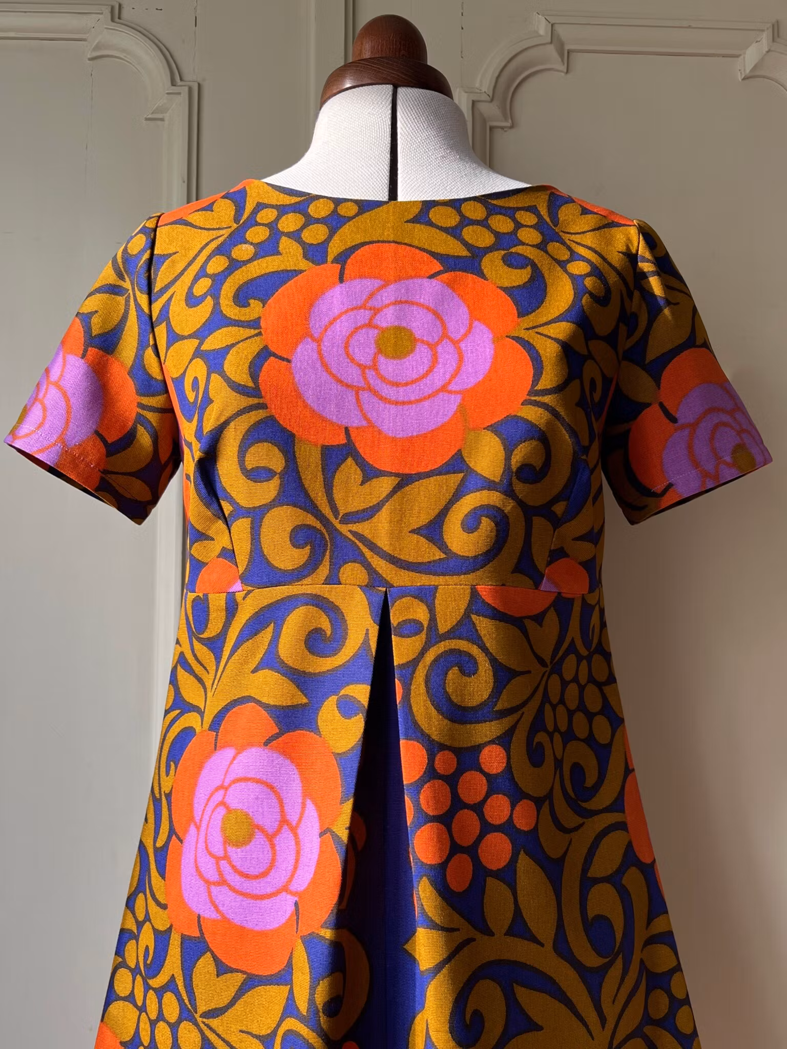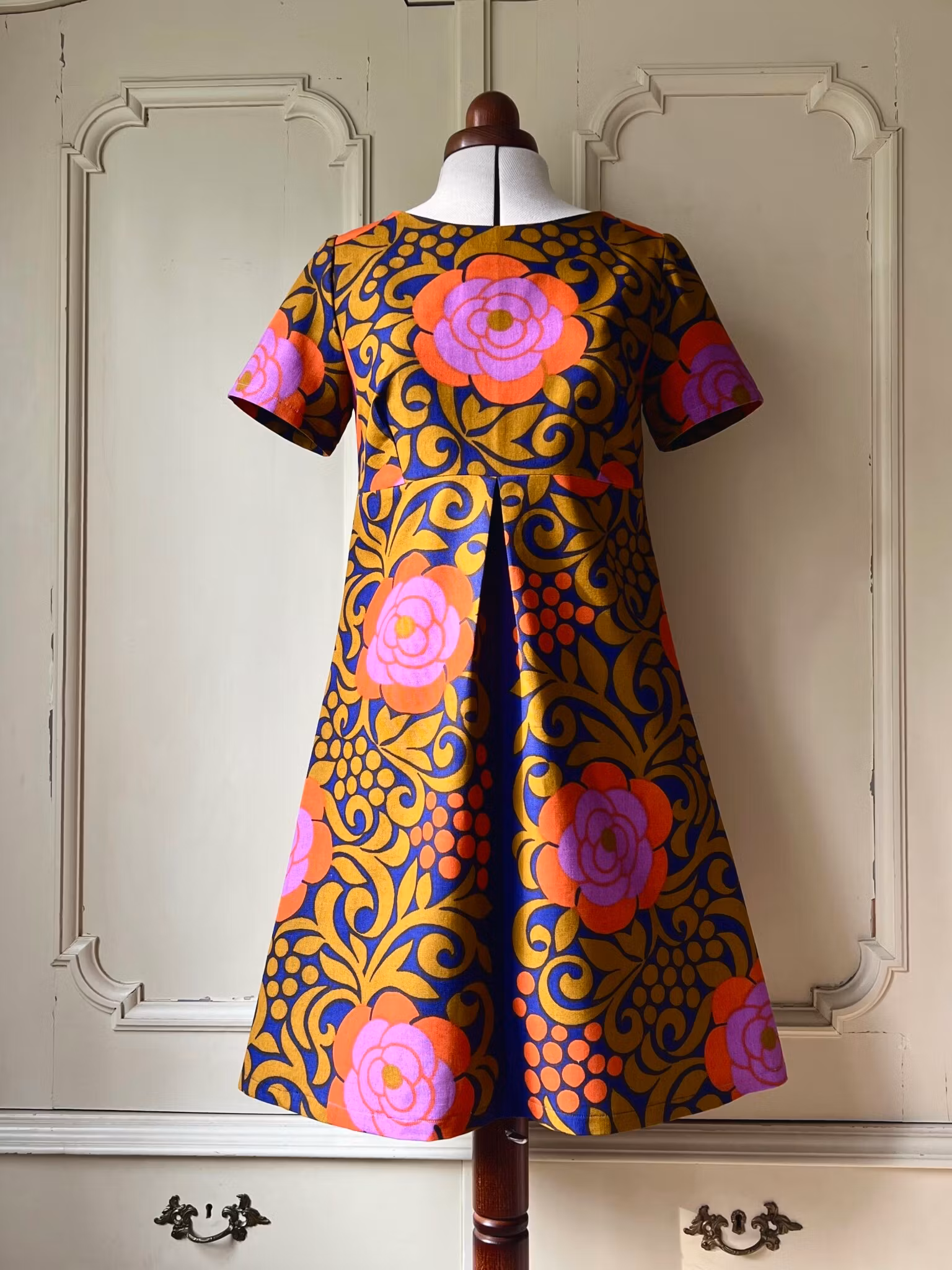 Klänning sydd i ett äkta retro/vintagetyg i vävd bomull.