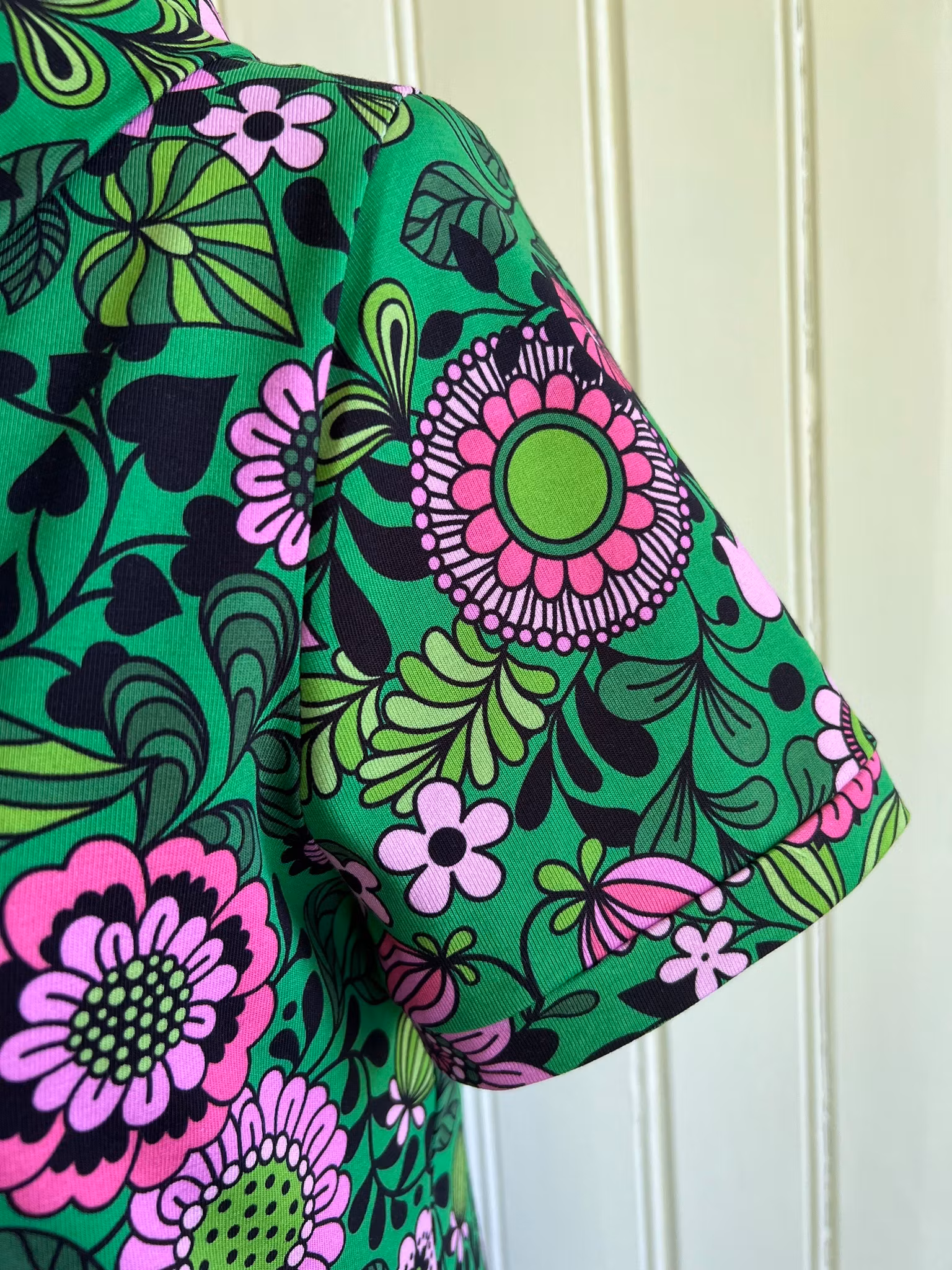 Tyget är designat av Linda Forsberg för Vintage in my heart. Material 95 % bomull och 5 % elastan, med stretch. Tvättråd 40 grader, ingen torktumling, krympmån 4 %.