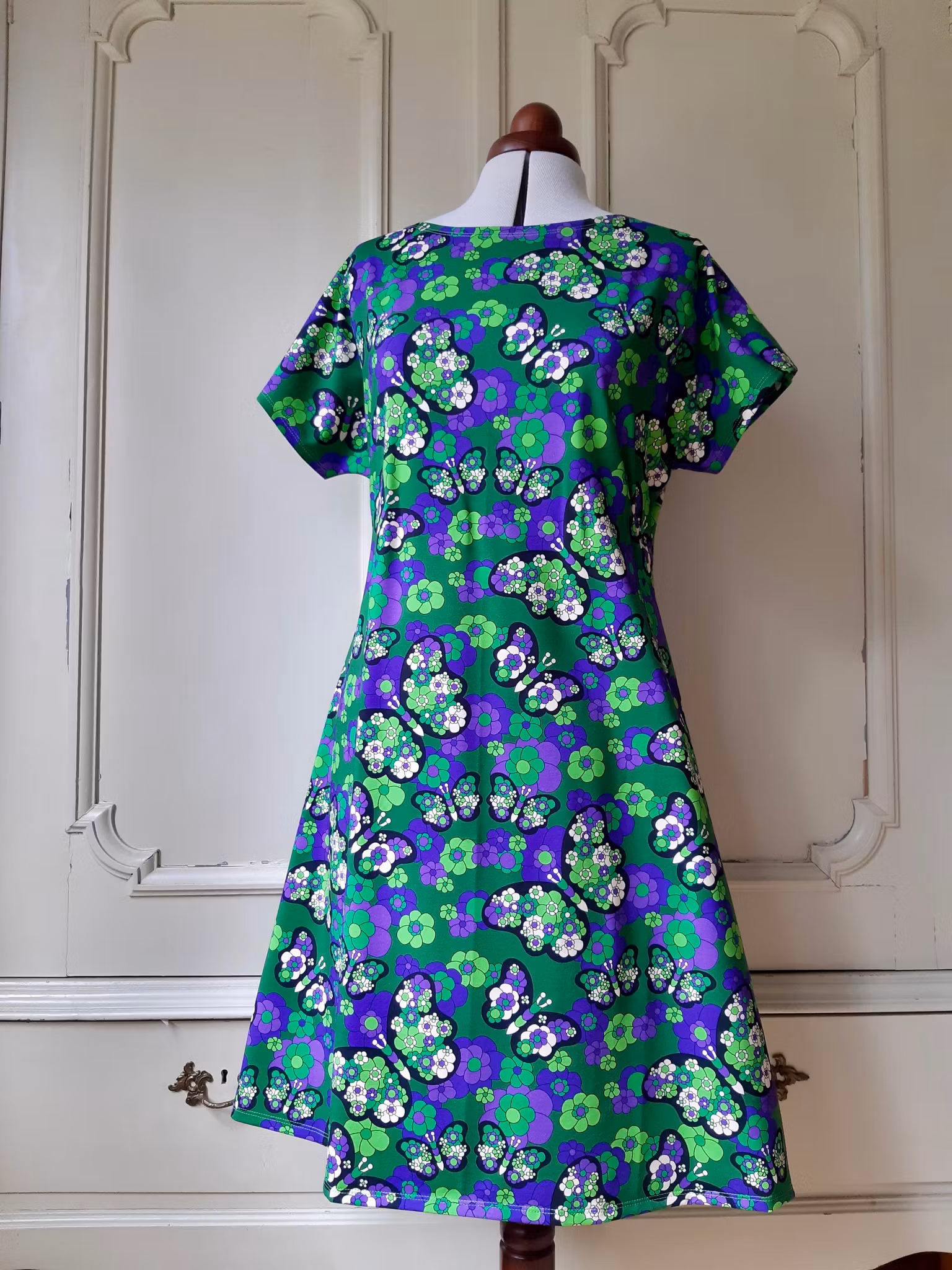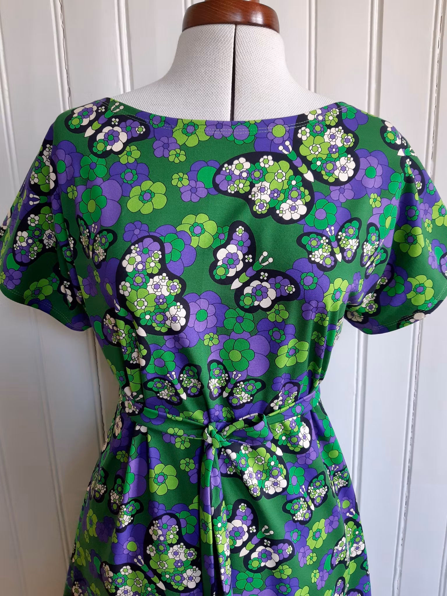 En klänning för härliga vår- och sommardagar. Ledig och mjuk modell i bomullsjersey med tillhörande skärp.