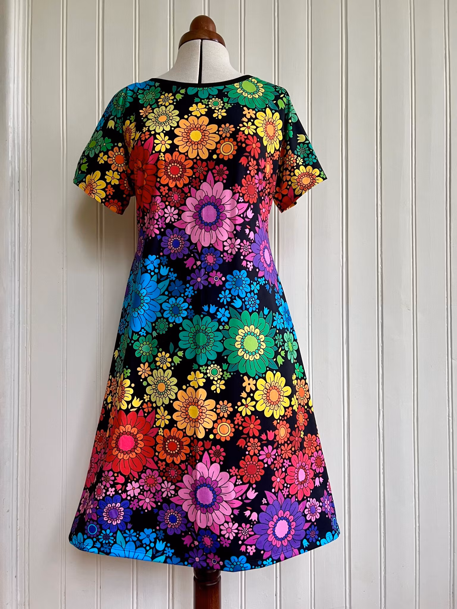 Klänning sydd i A-linjemodell i ett mjukt härligt jerseytyg med gott om stretch i.