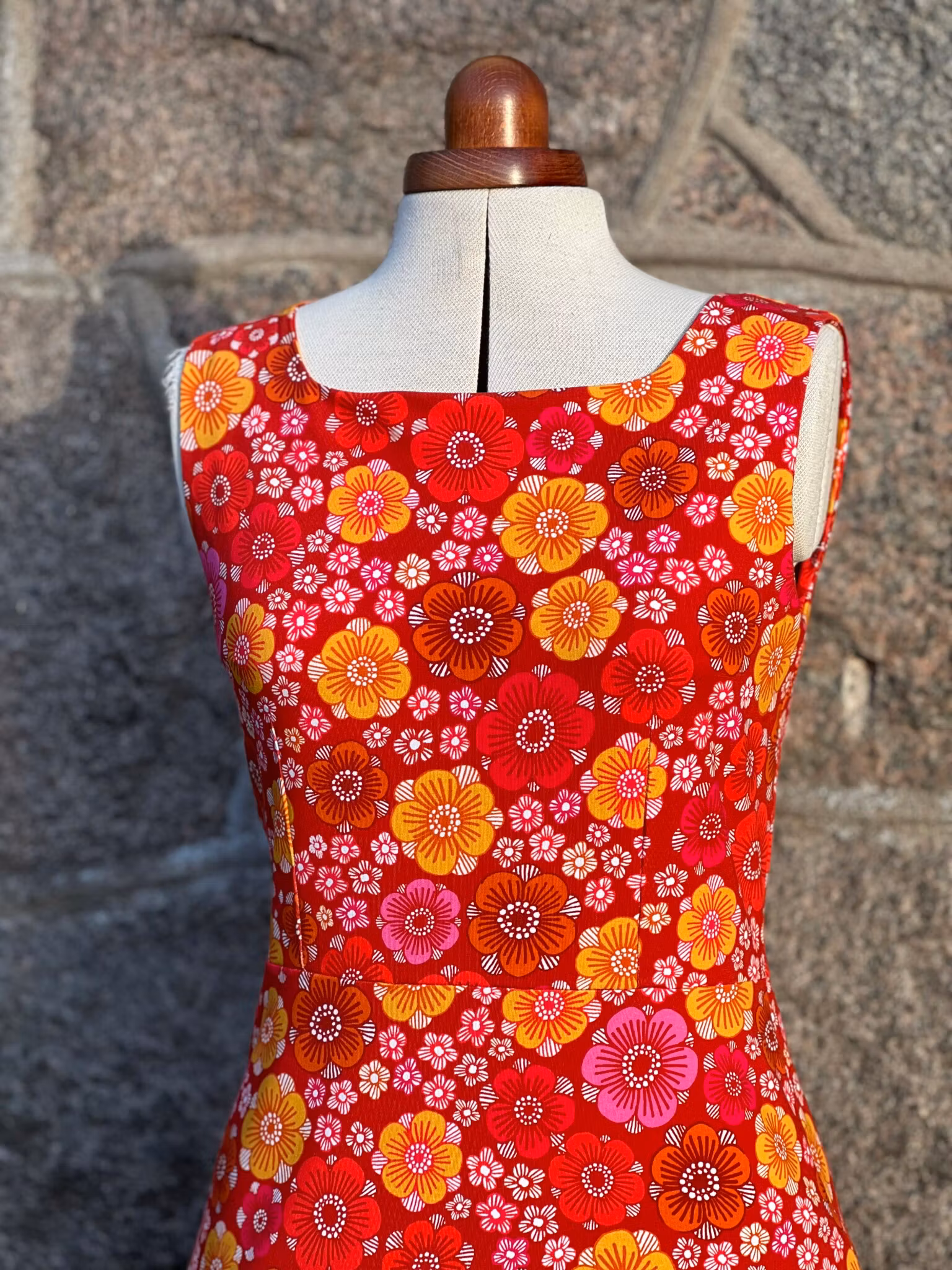 Tyget är designat av Leena Rissa för Vintage in my heart. Material 95 % bomull och 5 % elastan, med gott om stretch. Tvättråd; fintvätt 40 grader, torktumlas ej. Krympmån 4 %.