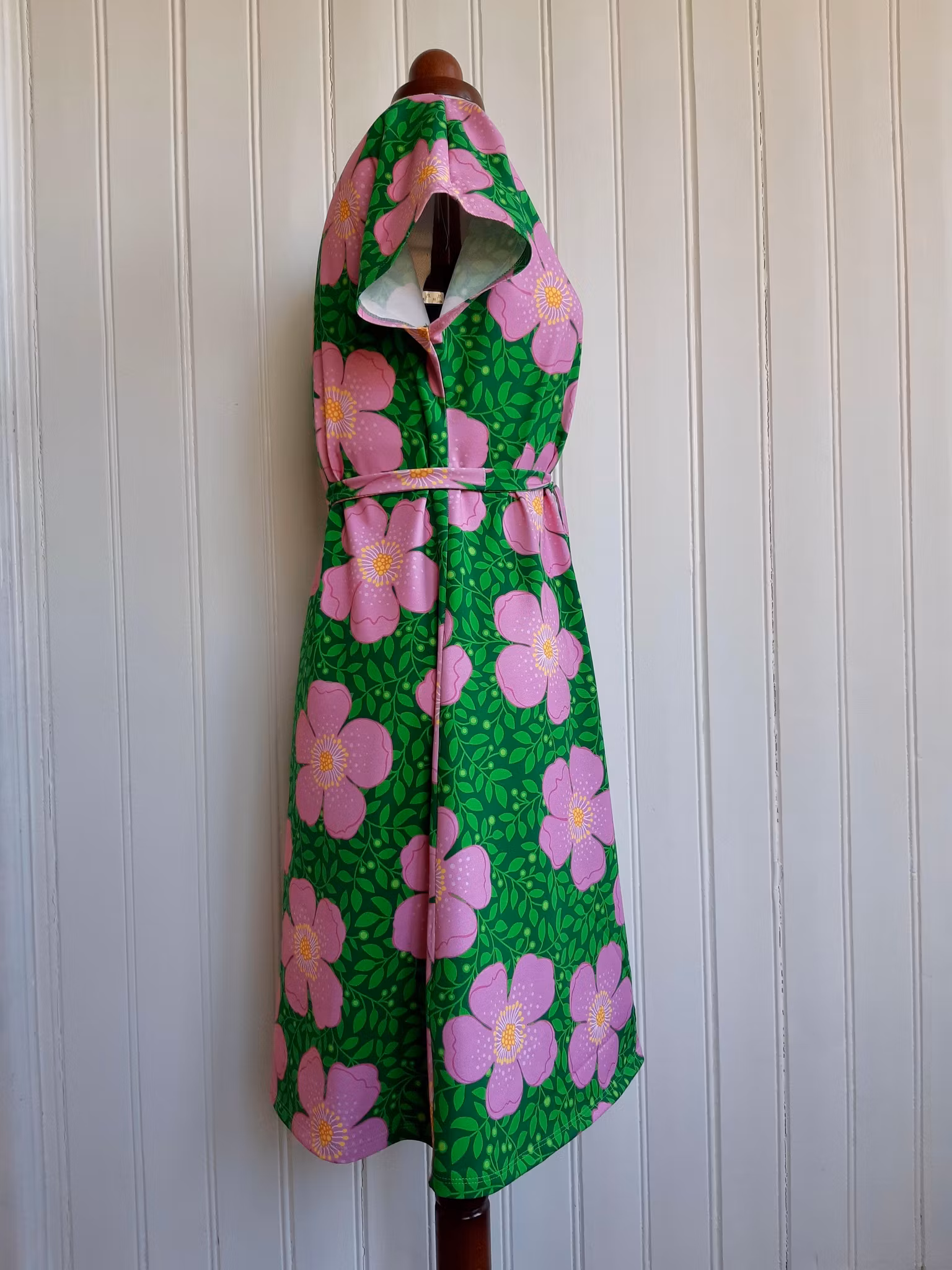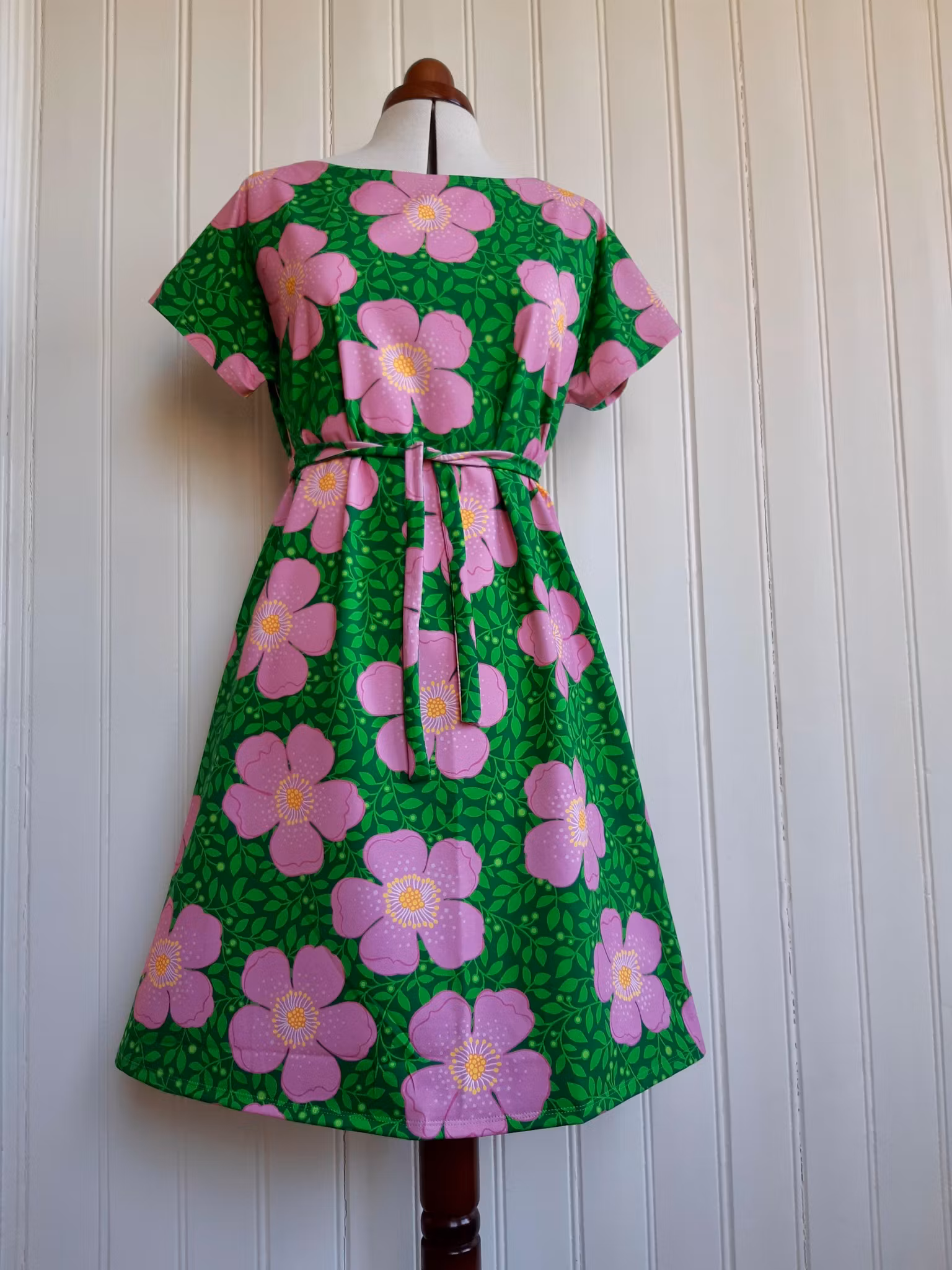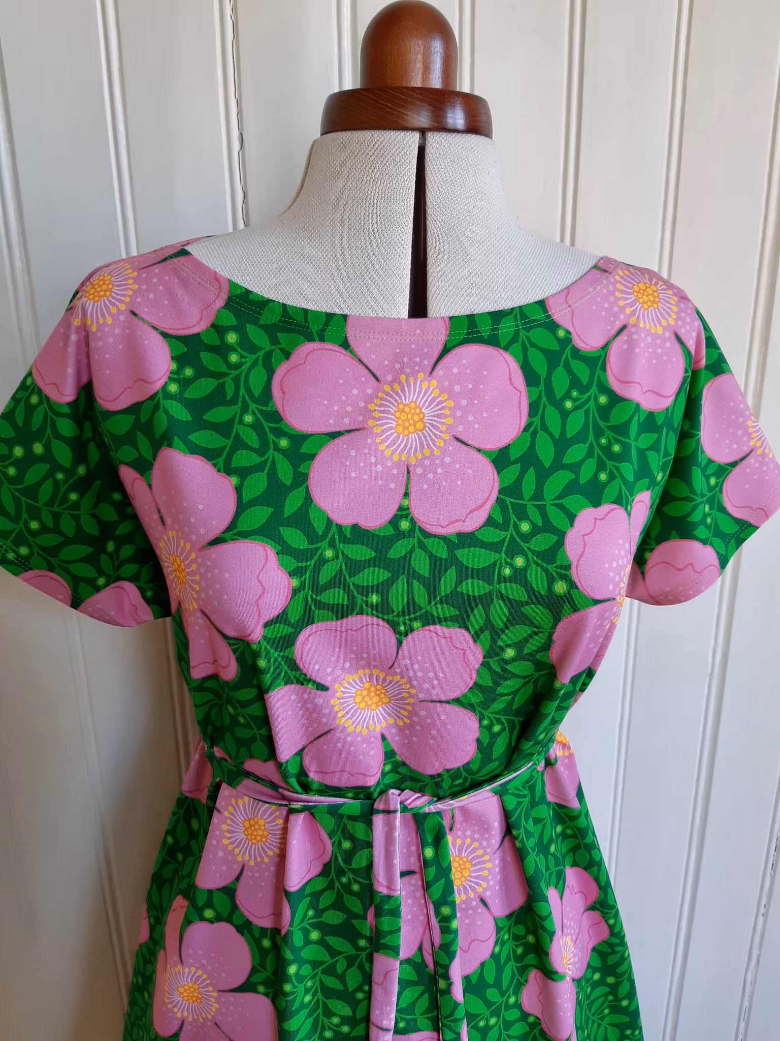 En klänning för härliga vår- och sommardagar. Ledig och mjuk modell i bomullsjersey med tillhörande skärp.