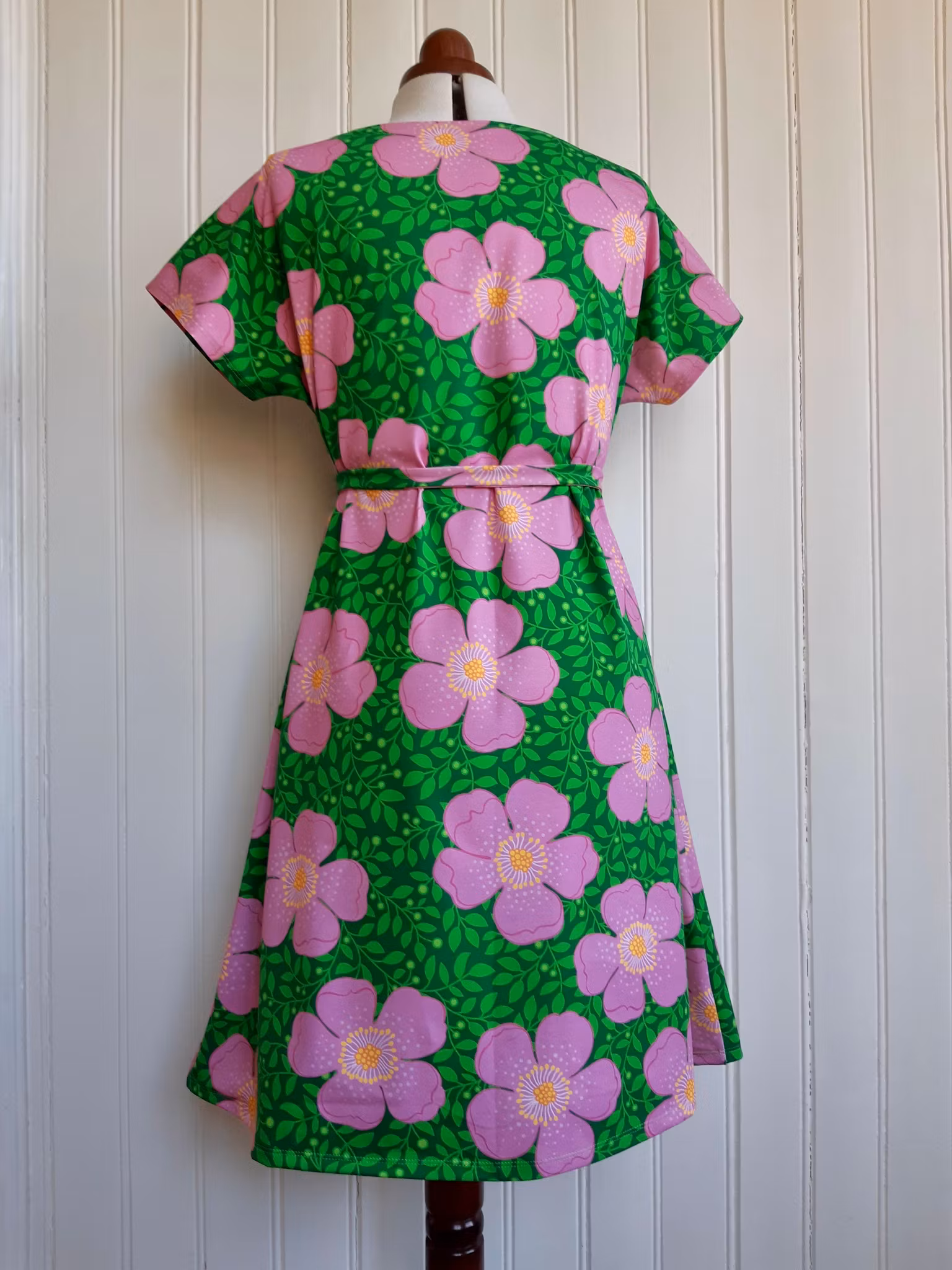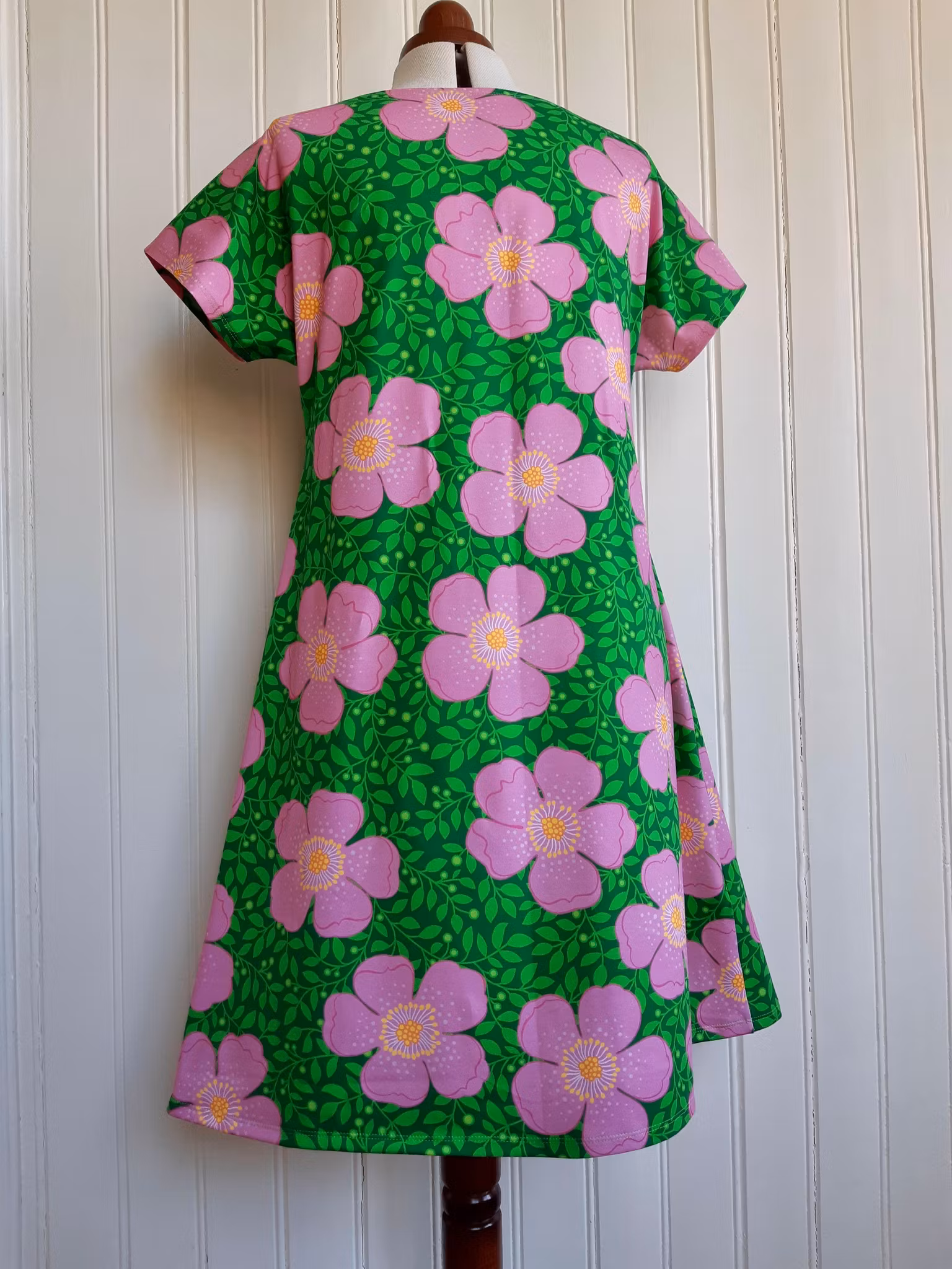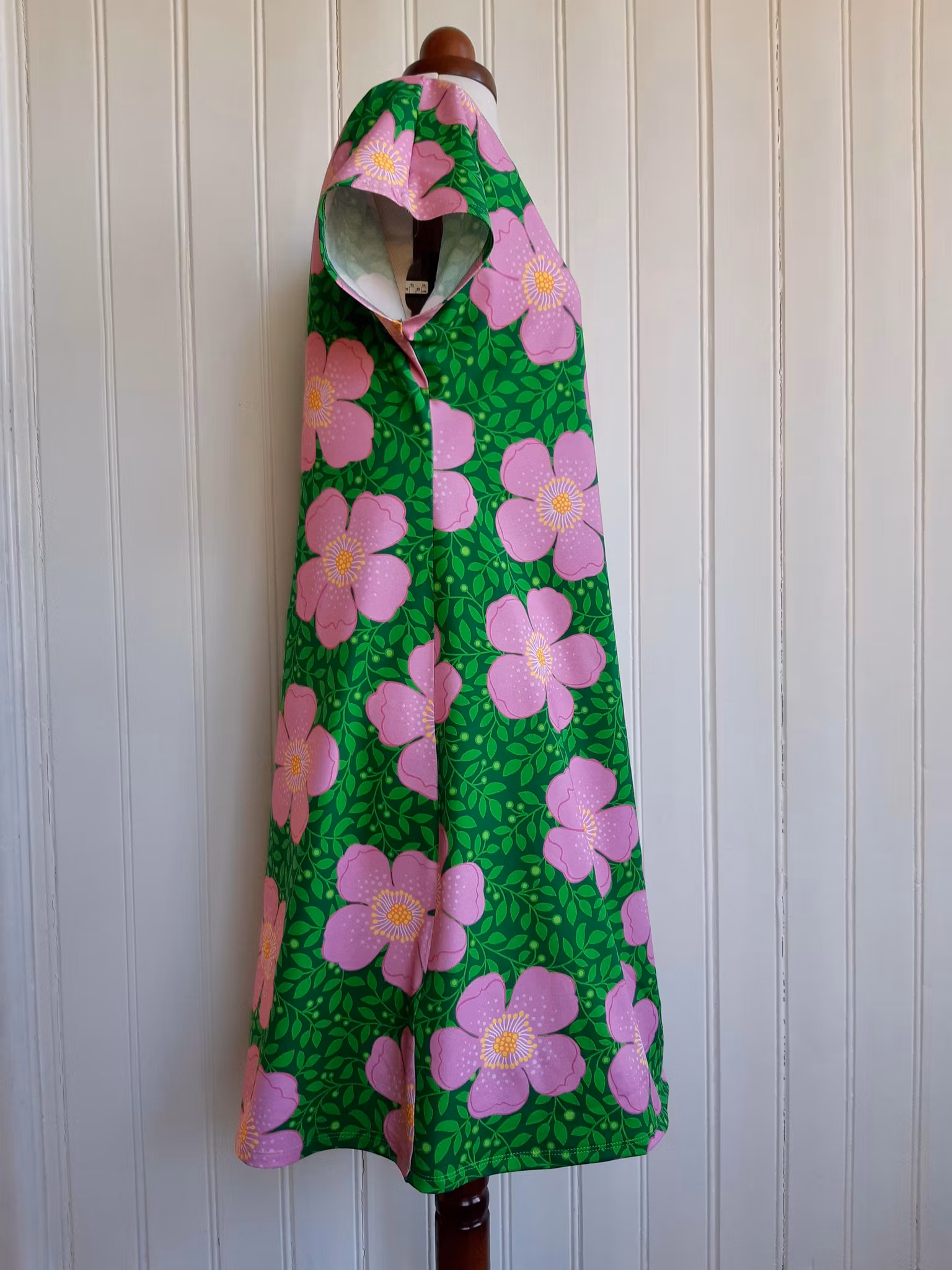 En klänning för härliga vår- och sommardagar. Ledig och mjuk modell i bomullsjersey med tillhörande skärp.
